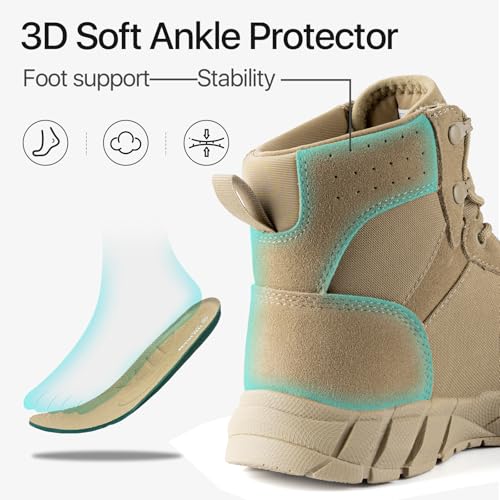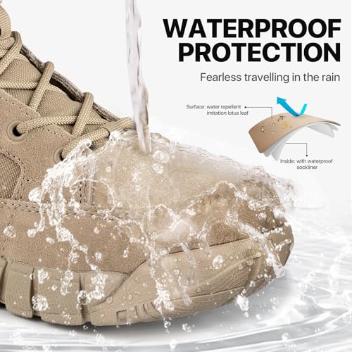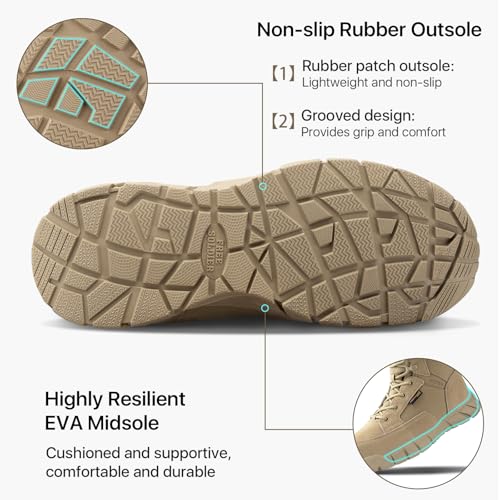WATERPROOF & BREATHABLE : These waterproof boots for women feature a waterproof leather upper that ensures your feet stay dry in wet conditions. The waterproof sock liner effectively blocks rain and puddles, keeping your feet comfortable and dry even in the harshest weather conditions. Together with the breathable material, these tactical boots for women provide excellent air circulation to prevent moisture buildup, breathable and waterproof to keep feet fresh and comfortable all day long