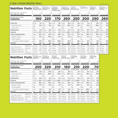 NUTRITIONALLY BALANCED EASY MEALS – With 15 meal varieties and providing approximately 1,907 calories and 56 grams of protein per person per day, these emergency supplies are great for creating nutritious prepared meals for breakfast, lunch, and dinner
