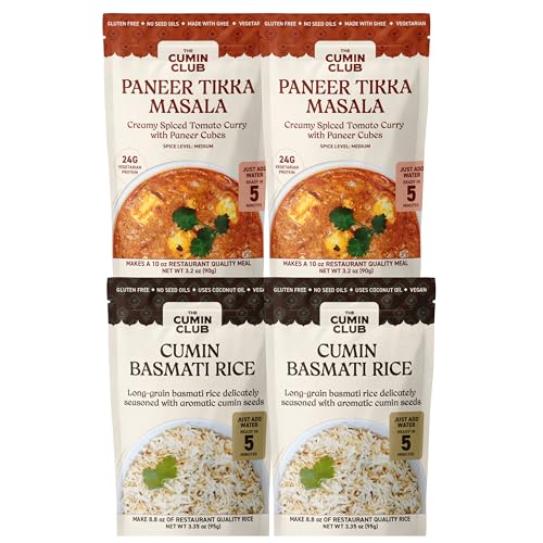 Cumin Club Indian Meals | Freeze Dried Backpacking & Camping Food | Gluten Free | High Protein | 2 Packs of Paneer Tikka & 2 Packs of Cumin Rice | Authentic Flavors for Outdoor Adventures | Ready to Eat & Easy Prep