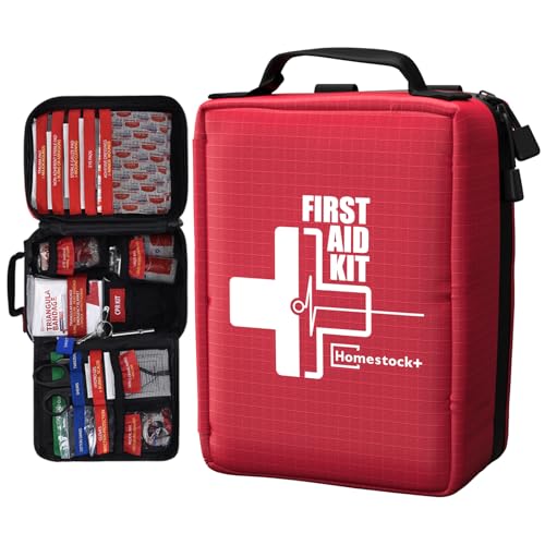 PORTABLE FIRST AID KIT-The Homestockplus first aid kit features a compact design (5.9″ x 7.9″ x 3.6″) and weighs just 1.3 lbs, making it easy to carry in backpacks, cars, or trucks for emergencies. Its lightweight and portable size ensures quick access to essential supplies when needed.
