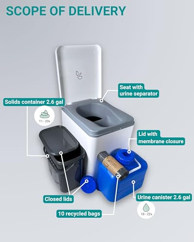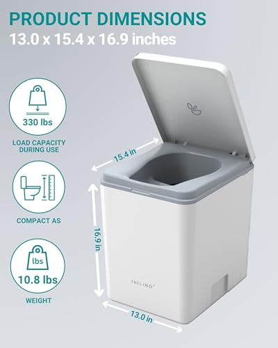 TRELINO Composting Toilet Evo L, Portable Toilet for Camping & Outdoor, Odorless, 2X 2.6 gal Capacity, 13 x 15.4 x 16.9 inches