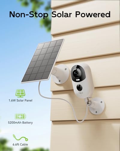 【Solar-Powered, Outdoor All-weather Protection】This solar security camera runs on non-stop solar power, eliminating the hassle of frequent battery changes. With just 4 hours of direct sunlight per day, this camera system operates reliably 365 days a year. Boasting an IP65 waterproof rating, it’s built to withstand harsh outdoor weather conditions