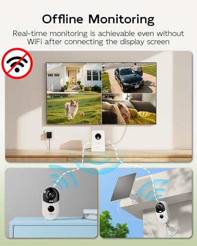 【Offline Monitoring & Flexible Viewing】Stay connected with real-time monitoring even offline by linking the home security system to a TV/monitor. Never miss important moments—from package deliveries to unexpected activity—for non-stop home protection. The offline feature adds an extra security layer against unexpected network outages
