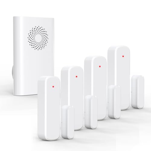Wireless Door Chime, Door Open Sensor Alarm When Entry Business/Office/Store (500ft Range 51 Ringer Adjustable Volume) Home Alert Bell for Kid/Toddler Safety,1 Receiver +4 Sensors