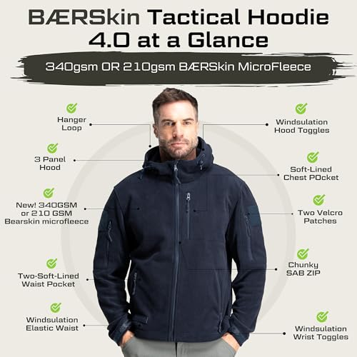 Baerskin Tactical Hoodie Jacket for Men 4.0 – Military Style Fleece Sweater for Cold, Rain, Wind or Snow