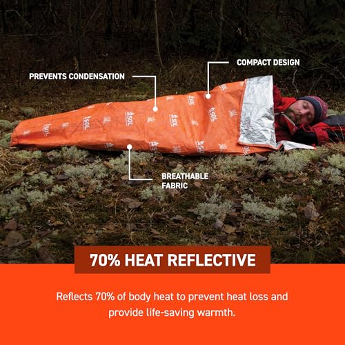 S.O.L. Survive Outdoors Longer SOL Escape Lite Bivvy – Reflects up to 70% Body Heat – Waterproof Emergency Blanket for Survival Gear – 82″ x 32″ – 5.5 oz – Orange